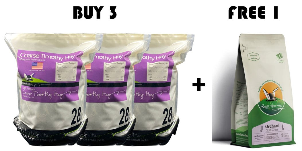 Bundle of Rabbit Hole Hay 1st Cut 28oz x 3 + Rabbit Hole Hay Soft Orchard Grass Hay 24oz x 1 (FOC)