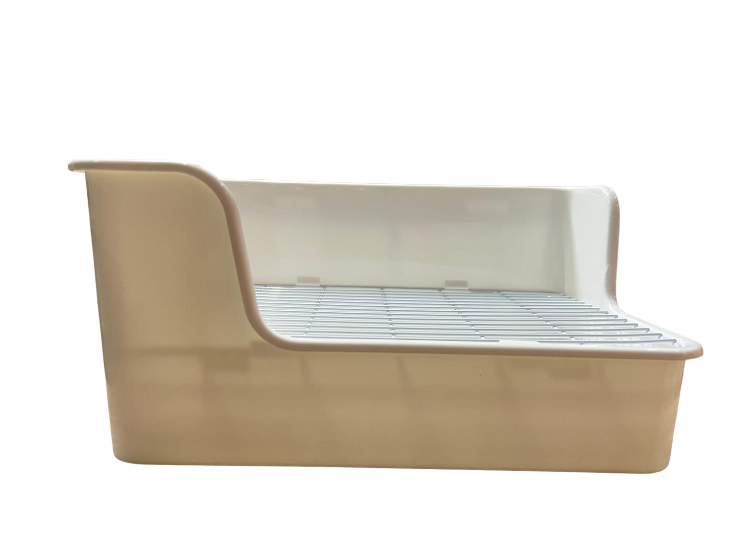 With deep tray and wide floor area. Able to secure to cage with hook attached. Suitable for rabbits, guinea pigs, chinchillas. Wash and dry when it is soiled.